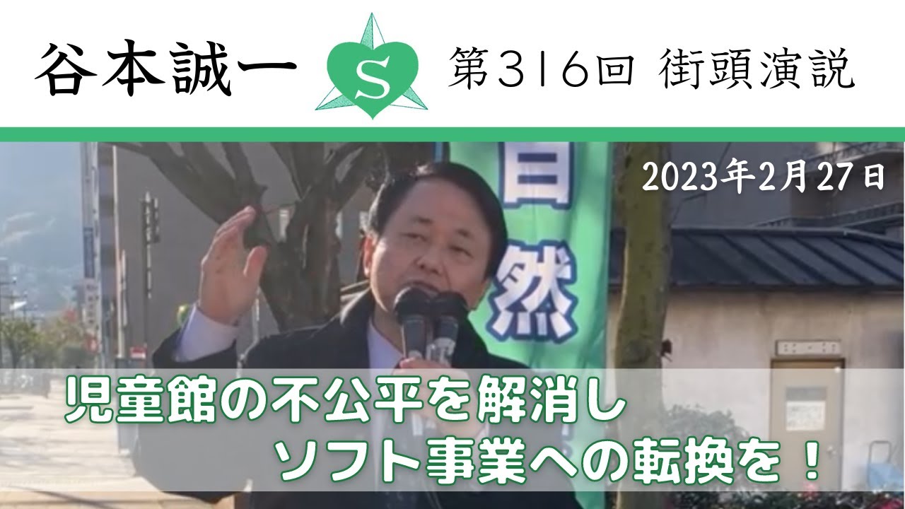 第316回街頭演説 児童館の不公平を解消しソフト事業への転換を!(2023.2.27)